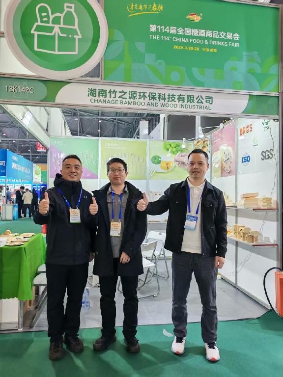 3 月 26 日 —28 日,第 114 届全国糖酒商品交易会在成都中国西部国际博览城、世纪城国际会展中心盛大举办。湖南竹之源环保科技有限公司携全系列竹制环保餐具、高端竹木包装新品重磅亮相,以天然竹材、匠心工艺与绿色理念,为食品糖酒行业带来可持续包装解决方案,吸引海内外客商广泛关注与洽谈合作。